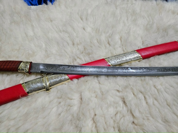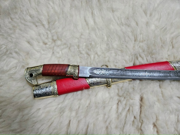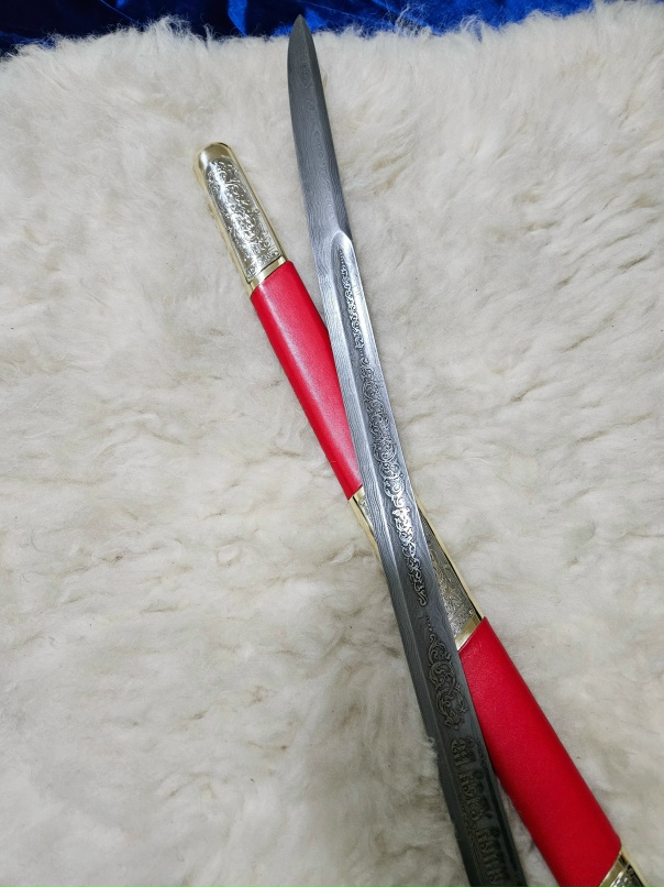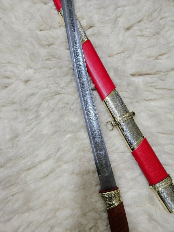 дамасская сталь ручной ковки приборы латунь-незельбер красная кожа