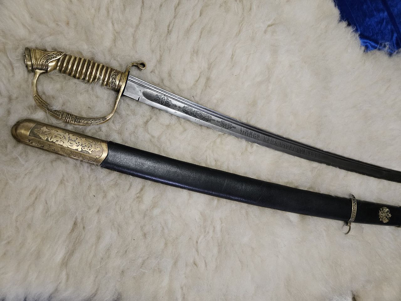 шашка образца 1881года (ДРАГУНСКАЯ) интересная реплика под старину ( анненское оружие) клинок трёхдолый клеймо мастеров завъяловыъ ,на клинке надпись с одной стороны (Бога бойся Царя чти) с другой слава нам страх врагам латунная ручка с орденом Святой Анны