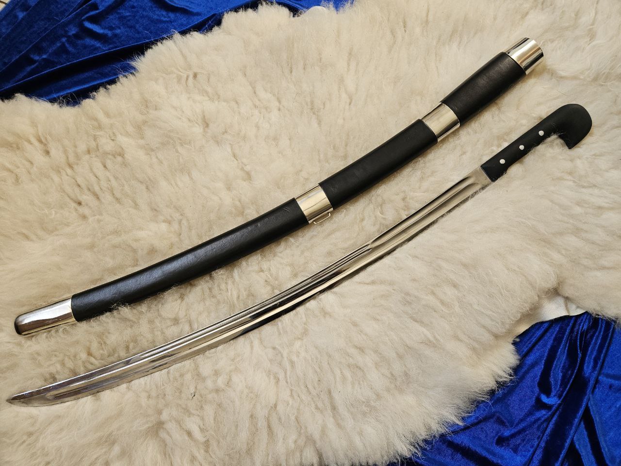 шашка кавказская четырёхдолая , класический вариант, клинок чистый ,ручка клёпаная из массива берёзы ,окрашена и пропитанна воском,ножны дерево ,натуральная кожа,приборы незельбер